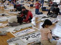 集中して画仙紙に向き合う子供たちの姿が見られました。いい字が書けたかな?