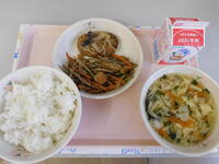 ごはん 牛乳 いも団子汁 いわしのみぞれがけ 鶏肉とこんにゃくの炒め煮