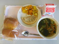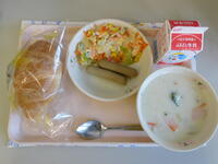 キャロットピラフ 牛乳 オニオンスープ オムレツデミグラスソース