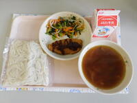 マーボーめん 牛乳 ひじきぎょうざ 切り干し大根のサラダ