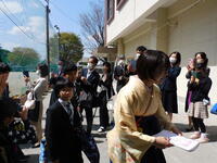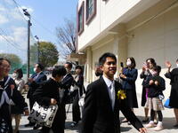 卒業式後は、いいばちゃんも駆けつけて、卒業生を見送ってくれました。