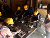 ②せんべい焼き体験です。焦がさないように、醤油がいい具合にしみるように香ばしく焼きます。出来立てのせんべいの味は格別でした!