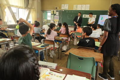 6月10日に川口市と友好都市提携している、アメリカ オハイオ州フィンドレー市のアンディ教育長が4年3組の外国語の授業にお越しくださいました。曜日の言い方を学んだ時には、どの曜日に何をしているか、わかりやすい英語で話してくれていました。